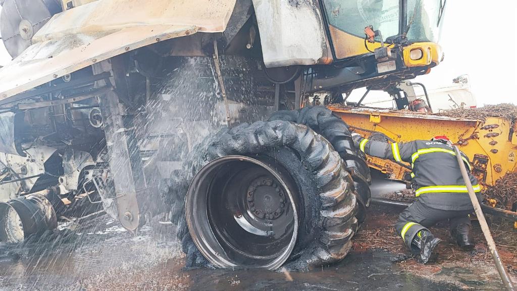 Os bombeiros militares assumiram a ocorrência e realizaram o combate direto por meio do método de resfriamento, para conter os focos remanescentes que ainda havia na estrutura da máquina agrícola, sendo empregados aproximadamente dois mil litros de água. Em seguida, foi realizado o rescaldo minucioso, incluindo o compartimento do motor e áreas de difícil acesso, a fim de eliminar qualquer possibilidade de reignição.