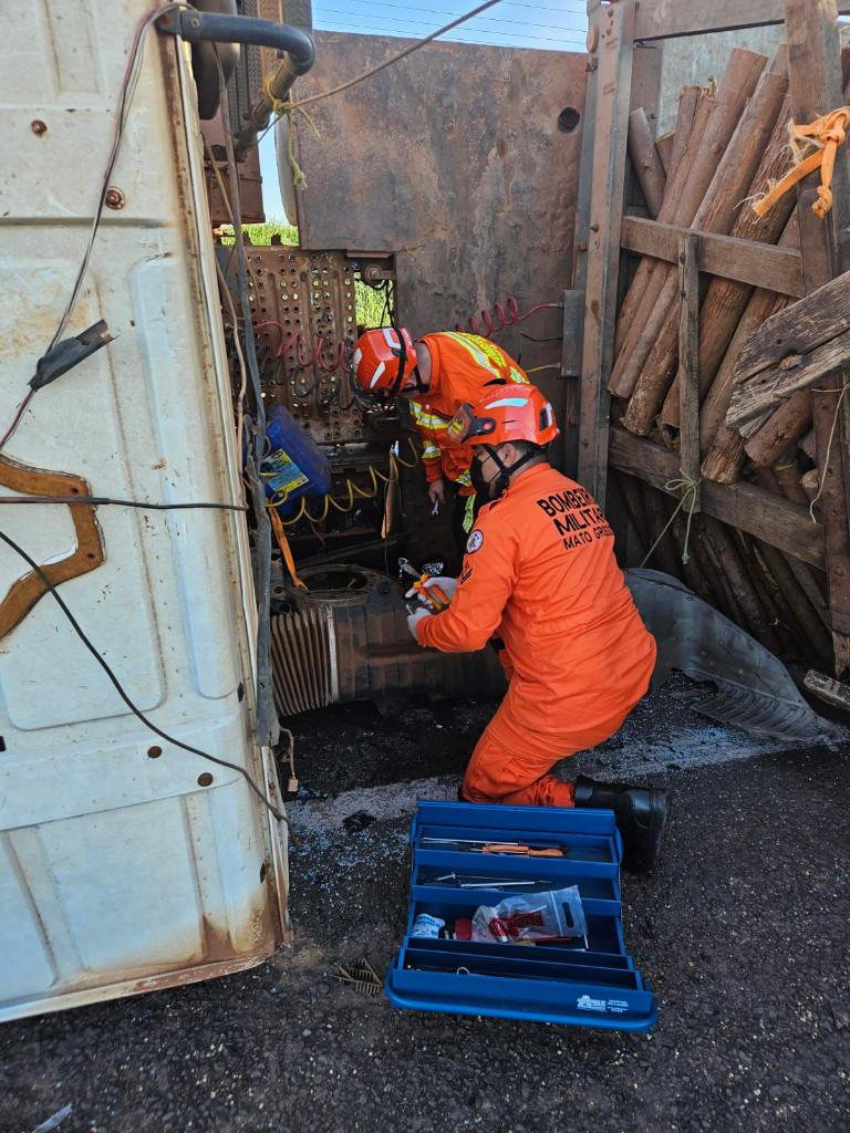 O 2º Pelotão Independente Bombeiro Militar (2º PIBM) recebeu o chamado por volta das 06h45. Ao chegar ao local do acidente, foi constatado que uma carreta carregada com eucalipto havia tombado e parte da carga estava espalhada sobre a pista.