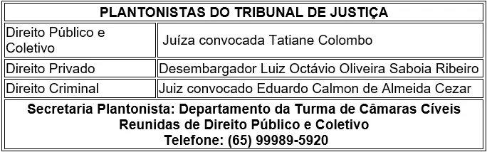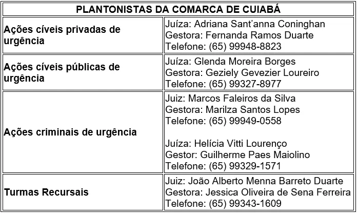 Confira quem serão os plantonistas na comarca de Cuiabá: