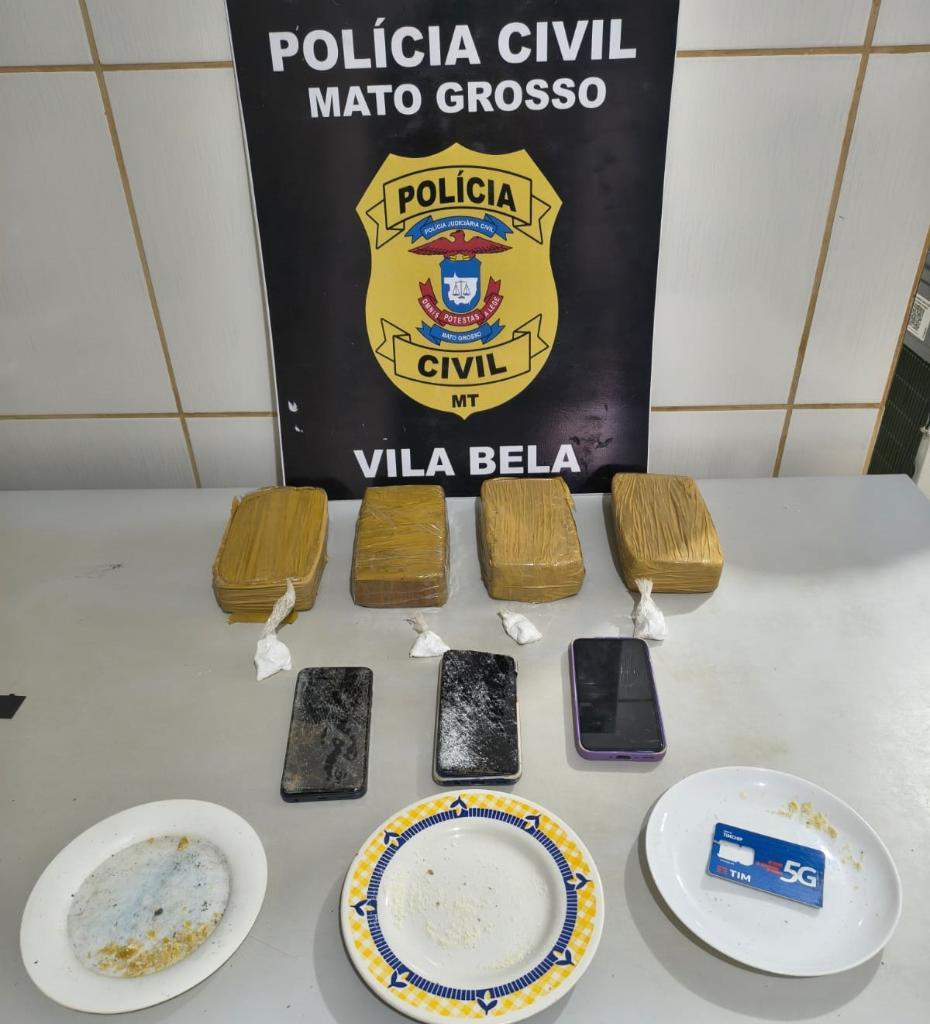 A Polícia Civil prendeu, nessa quarta-feira (25.3), dois homens, de 25 e 35 anos e uma mulher, de 29 anos, por tráfico de drogas, corrupção de menores, ameaça e promover organização criminosa, e apreendeu uma adolescente, de 13 anos, por crime análogo a tráfico de drogas, em Vila Bela da Santíssima Trindade.