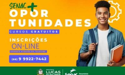 A Prefeitura de Lucas do Rio Verde, em parceria com o Senac, está com inscrições abertas para dois cursos gratuitos: Boas Práticas para Serviços de Alimentação...