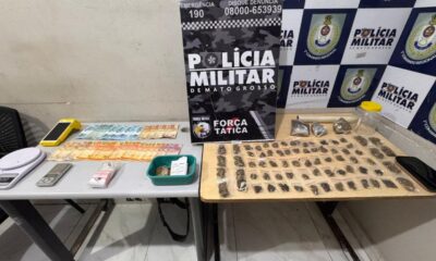 Força Tática prende três pessoas por tráfico de drogas, apreende entorpecentes e R$1,3 mil em dinheiro