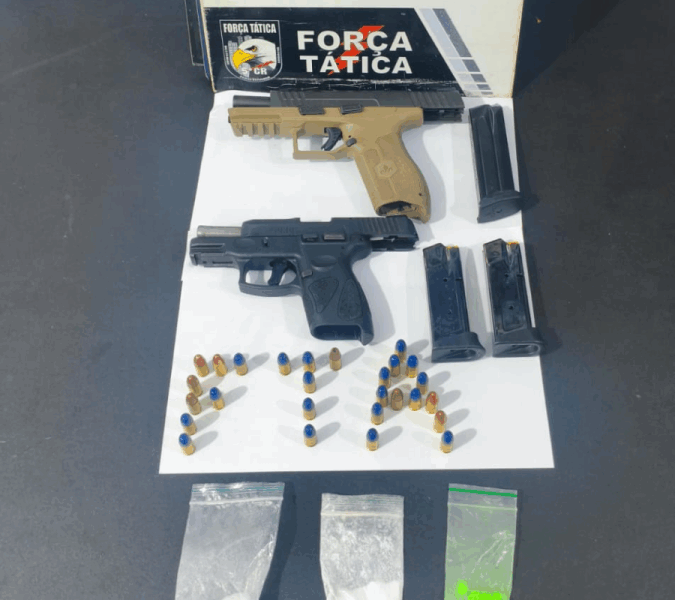 Policiais militares da Força Tática do 5º Comando Regional prenderam dois homens, de 37 e 40 anos, por porte ilegal de arma de fogo, na noite...