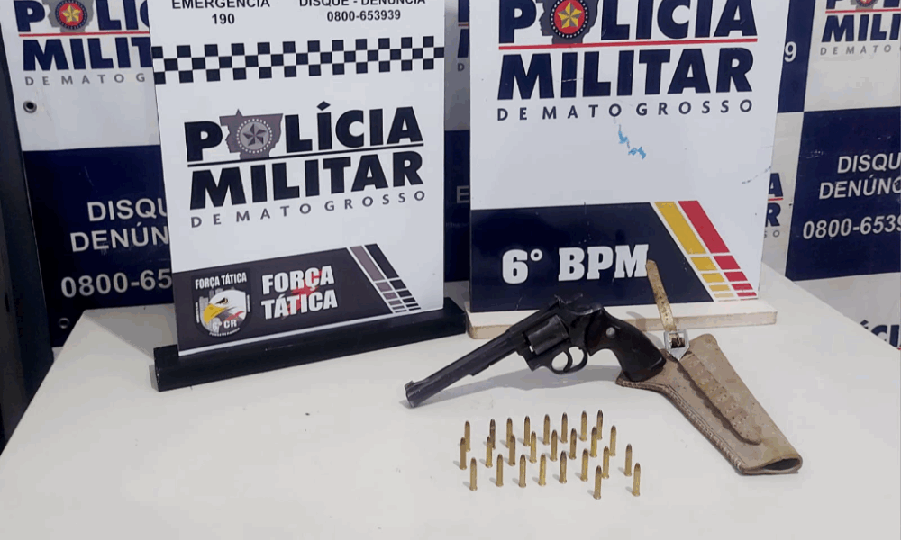 Policiais militares da Força Tática do 6º Comando Regional apreenderam na noite desta quinta-feira (19.2), um revólver com 26 munições calibre .22, durante abordagem em Cáceres...